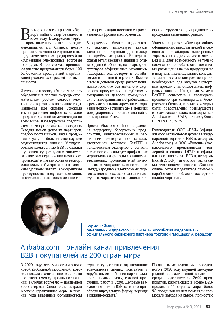 The main purpose of the new project of the Belarusian Chamber of Commerce and Industry Export online is to assist the entry of domestic manufacturers to foreign (international) electronic platforms – key points of growth of export trade in modern conditions.
