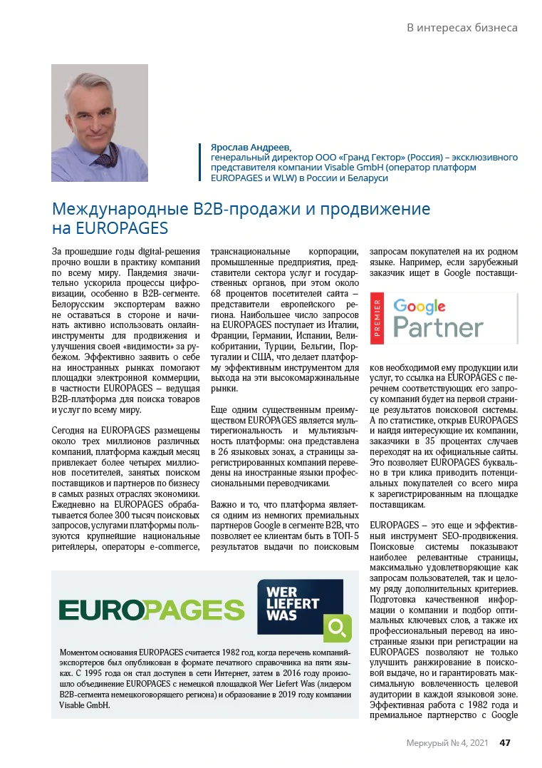 Open the international B2B sales channel on EUROPAGES